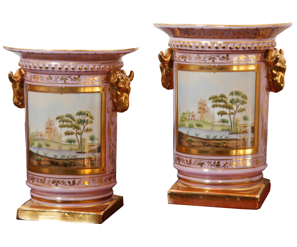 Florero con delicados filos dorados que tiene una grafica de un campo frances. Es de porcelana de